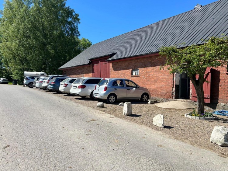 Parkeringen består av två hårdgjorda ytor, en vid ingången till hagarna och en längst med privatstall och loge. Parkeringarna har belysning. För att alla skall få plats och för framkomlighet krävs att bilarna parkeras så nära vägg/staket som möjligt.