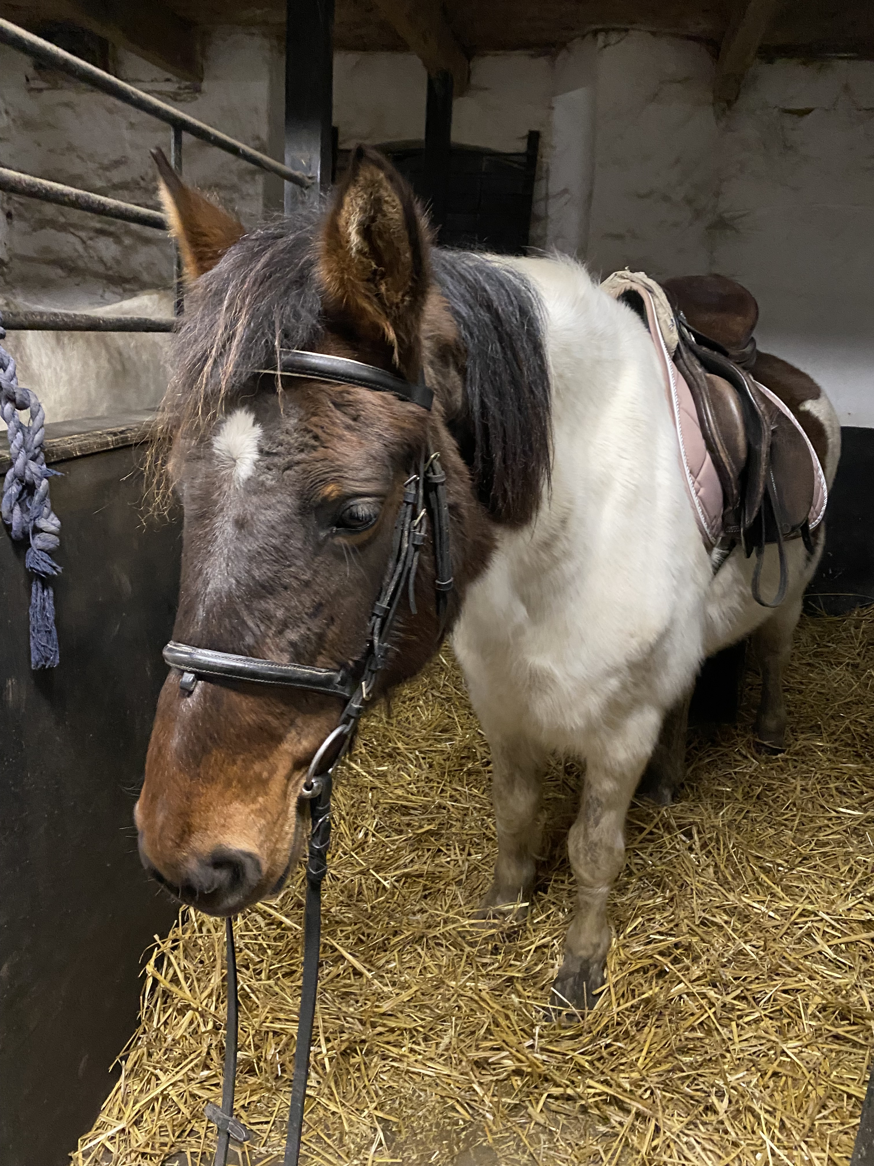 I boxen är Bianca supersnäll, men för den som lämnar boxdörren öppen en obevakad stund kan hon få för sig att känna på hur det är utanför boxen! Det har hänt både en och två gånger att Bianca passat på att traska ut när boxdörren varit öppen och hon varit sugen på äventyr.