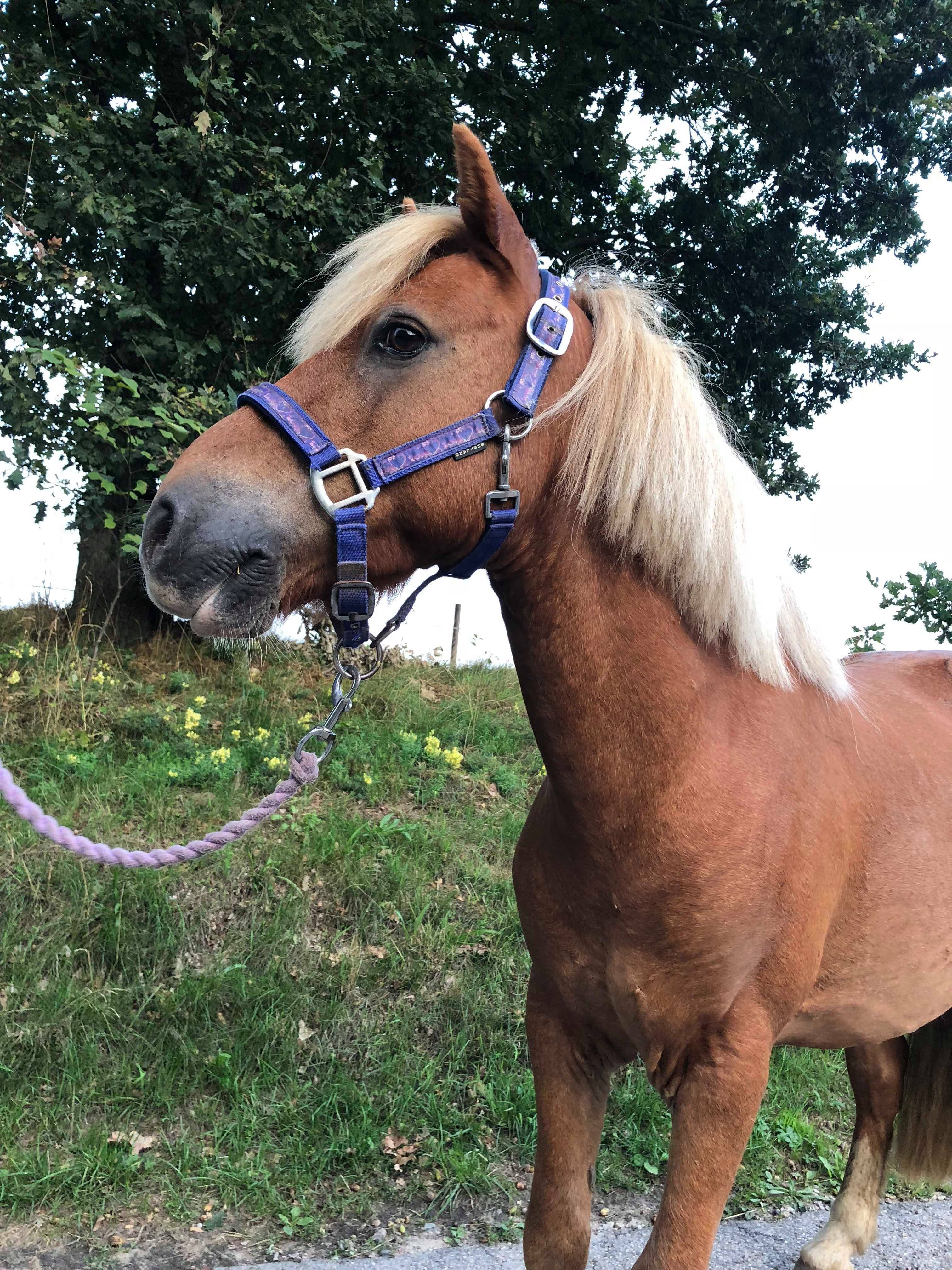 Mustang är en mysig ponny att rida på, han är snäll och går med de mindre ryttarna, både erfarna och oerfarna. Mustang gillar att ha en hästkompis att kunna följa och gillar inte alltid att gå först, även om han blir bättre och bättre på det, man kan säga att han gillar att leka ”följa John”.